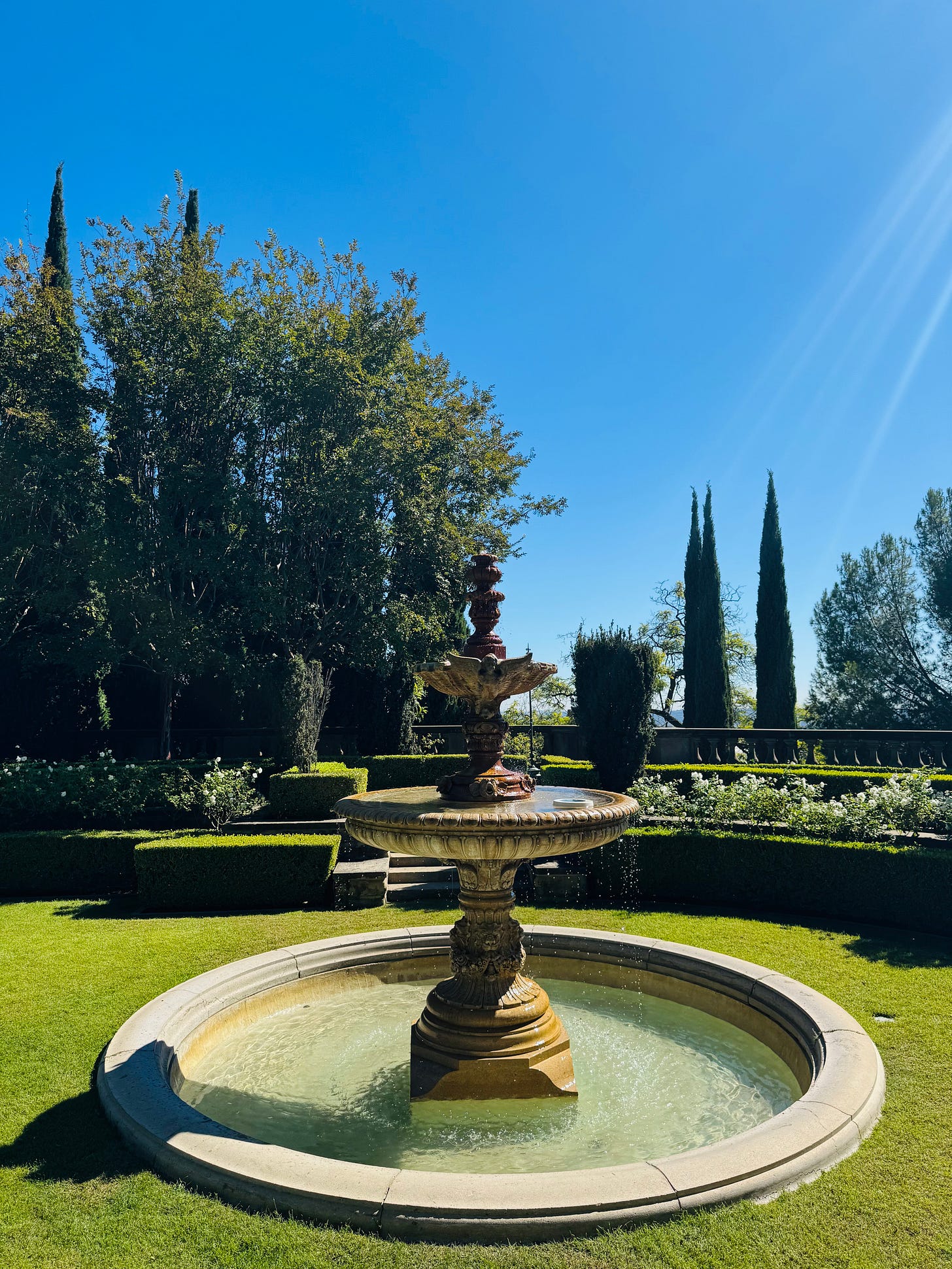 I celebrated my solar return early with my sister. We went for high tea and a stroll on some truly gorgeous grounds. I felt the treetops transmit their ancient knowings to me while the fountain waters whispered of flow. The feel of the cobbled stone earth beneath me told the tale of consistency and precision, while the light of the sun brought warmth and vision. The billowing breeze coated our time with freshness and ease. No blessing was missed or lost on me.